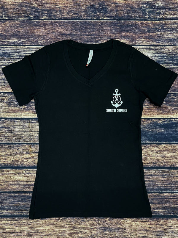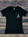 Embrace the lakeside lifestyle with our ladies v-neck t-shirt, inspired by the South Shore of Lake Huron, Sarnia, Ontario. Featuring a stylish anchor design on the front, this tee is perfect for those who love the lake, boating, and the serene vibes of the shoreline. Comfortable and versatile, it’s an ideal addition to any casual wardrobe.